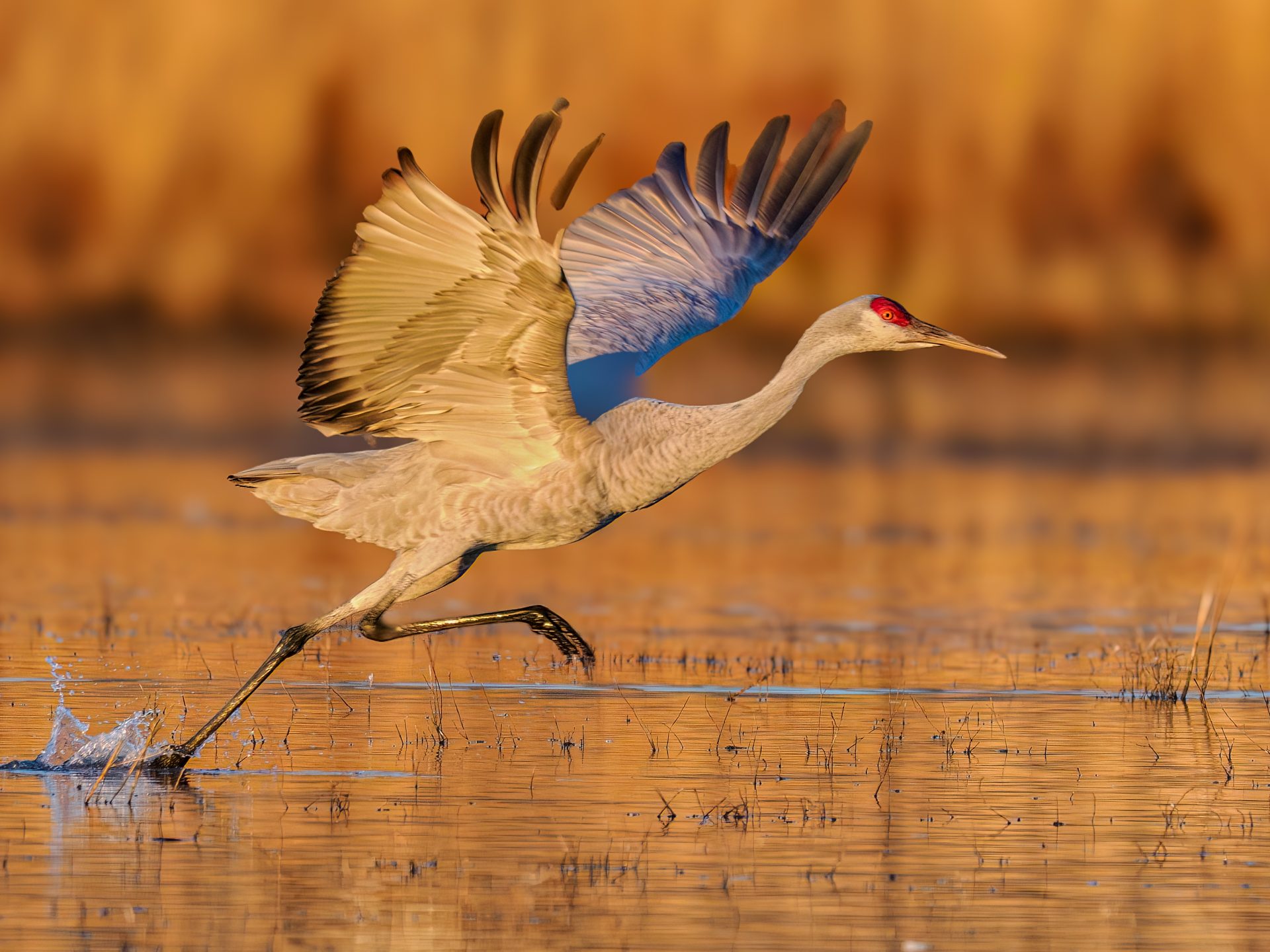 On a winter morning at Bosque del Apache National Wildlife Refuge, the sky turns gold as the sounds of wingbeats and song fill the air. Thousands of sandhill cranes, snow geese, and other waterfowl rise from their watery roosts and lift into the day. Their ancient calls, brassy and chaotic, echo across the wetlands as they feed, rest, and gather strength for their upcoming migration.